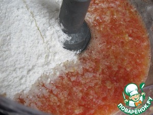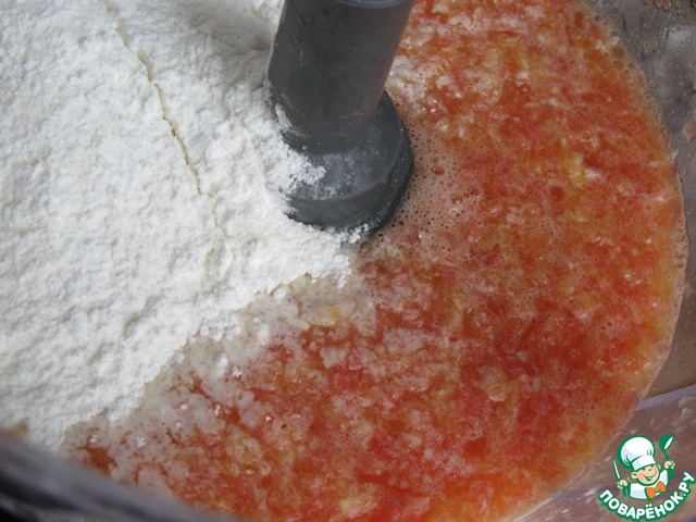 Измельчить 15 секунд. Всыпать сахар, смешанный с крахмалом.