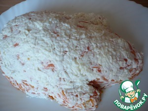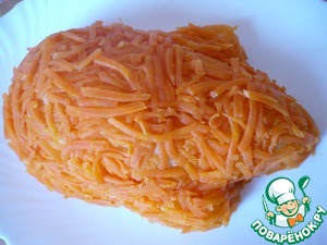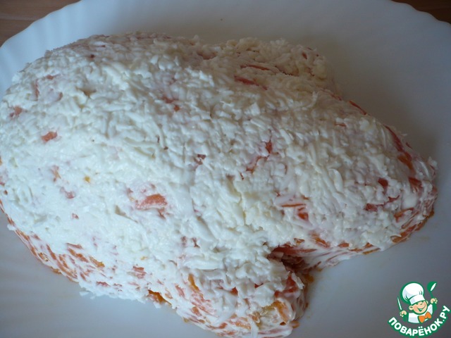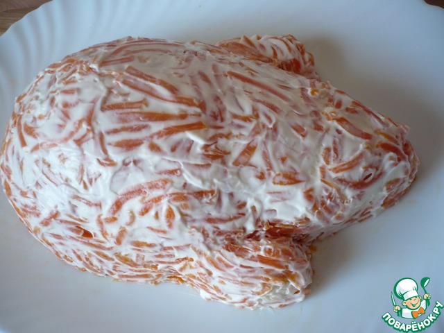 Слой моркови на салате смазать 2 ст. л. майонеза.