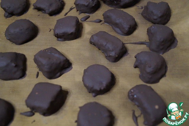 Из формы доставать конфетки и глазировать их в темном шоколаде.