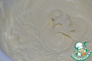 Выложить маскарпоне в посуду для взбивания, добавить часть сгущенного молока. На малых оборотах миксера аккуратно взбить. Добавить еще сгущенного молока и еще раз аккуратно взбить.