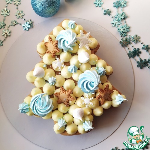 Такой торт станет отличным дополнением новогоднего стала. Готовить его совсем не сложно, если следовать рецепту. Украсить его можно на свой вкус, использовав безе, имбирные пряники, шоколад или ягоды. Указанного количества ингредиентов хватает на елочку в 1 кг.