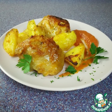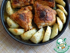 Рецепт «Запечённые куриные бёдра с ароматным картофелем»: