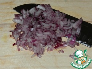 Лук нарезать мелкими кубиками, добавить к моркови с сельдью.