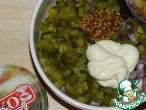 Добавить французскую горчицу и майонез, перемешать и убрать нашу закуску в холодильник, чтобы все ингредиенты "подружились".
