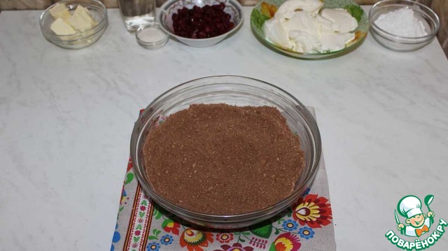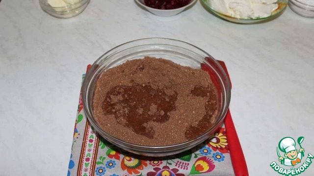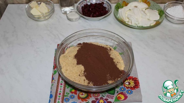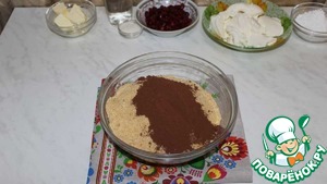 Печенье измельчаем в мелкую крошку. Добавляем какао.