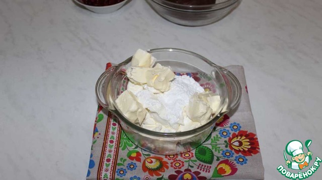 К сливочному сыру добавляем сахарную пудру и сливочное масло.