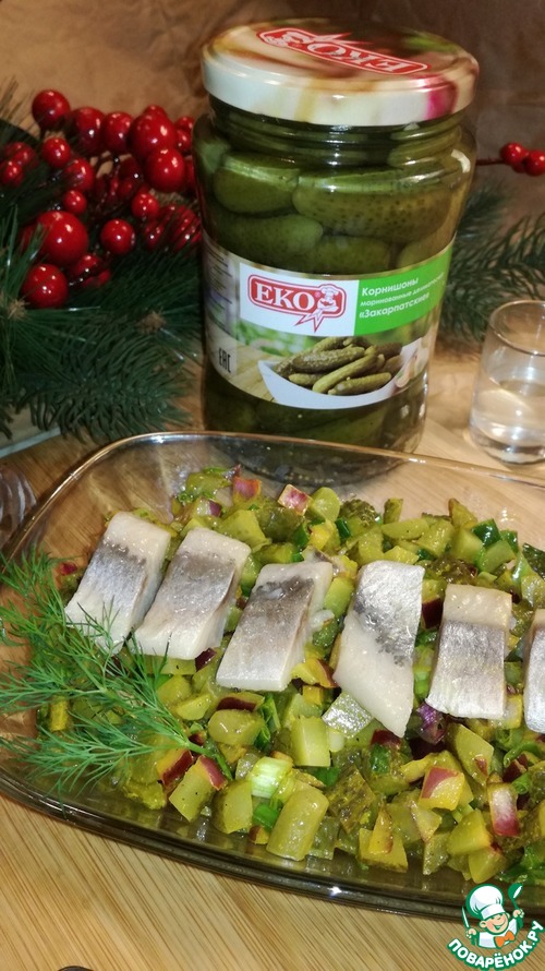 - Корнишоны (Маринованные деликатесные "Закарпатские" 680 г. от ТМ ЕКО) — 0.5 бан.