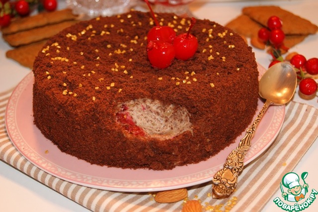 • Десерт нам очень понравился - в меру сладкий и влажный, с хрустящим миндалем и вишней, легким послевкусием шоколада.