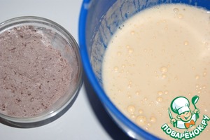 Яйцо взбить с сахаром и глюкозой до устойчивой пены.