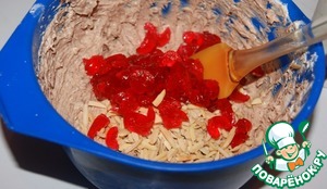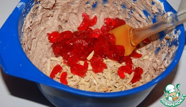 • Добавить вишню и миндаль, все перемешать лопаткой.