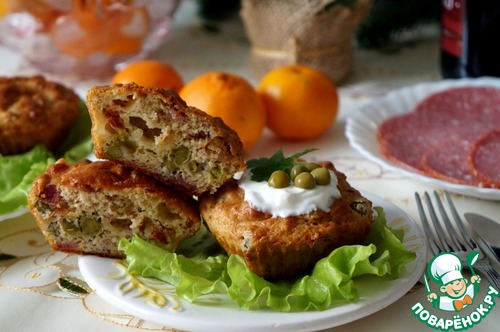 Когда будете делать салат для праздничного стола, отложите пару ложек горошка. Чтобы приготовить вот такие румяные закусочные маффины с сырной корочкой.