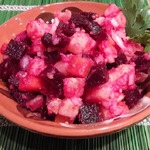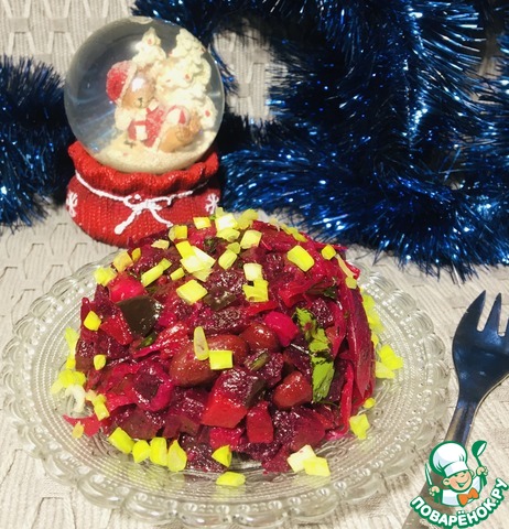 Да, я к вам с банальным винегретом! Не знаю для кого как, а для меня винегрет в детстве был обязательным салатом на Новый год, вместе с "Оливье", уже позже добавились "Мимоза" и крабовый, был стандартный набор. Сейчас отношусь к винегрету более буднично и меня часто выручает именно этот вариант салата с минимальным количеством ингредиентов. И уверяю вас, что на новогоднем столе он тоже будет пользоваться успехом и если его не украсит, то дополнит однозначно. Тем более, что и после нового года что-то нужно есть, так почему бы нам не сделать салат, который и в пир, и в мир, и как гарнир? Именно этого варианта на сайте нет, потому что это МОЙ вариант, рожденный лично мной в суровых условиях жизни, вдалеке от неосновных продуктов питания)))