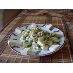 Мне кажется, что этому салату не нужны особые украшательства: у него красота естественная. Аккуратные разноцветные кубики овощей, масляный блеск и точечные вкрапления зерен горчицы... салат вполне самодостаточен.