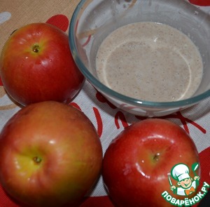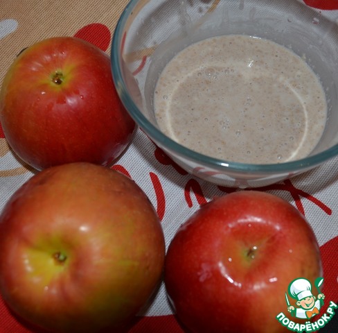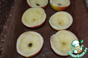 Яблоки разрезать пополам, удалить мякоть, сделав чашечки.