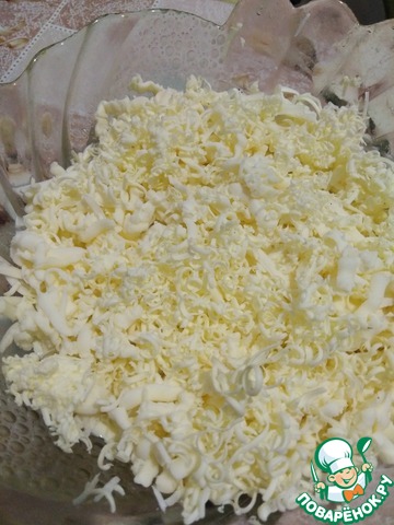 Поверх сырков на мелкой тёрке натереть предварительно замороженное сливочное масло.