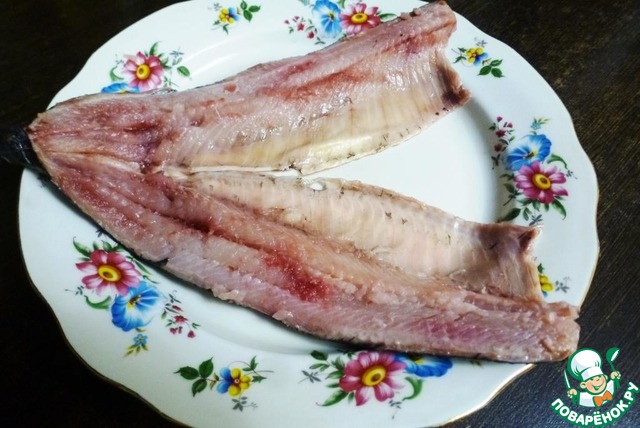 Закручивать тюрбан будем из сельди. Многие думают, что селедка может быть только соленая. Но и в запеченном, и в жаренном виде сельдь очень вкусна!