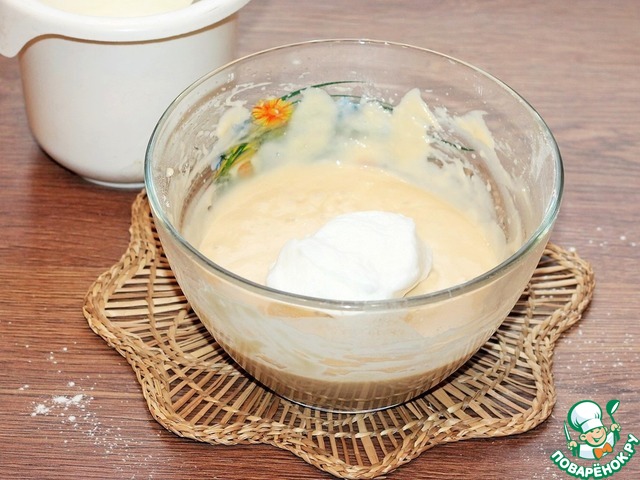 4. Добавляем взбитый белок и аккуратно вмешиваем в тесто.