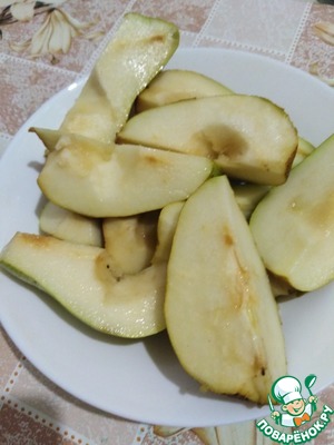 Груши вымыть, разрезать на половинки, вынуть сердцевинки и семечки.