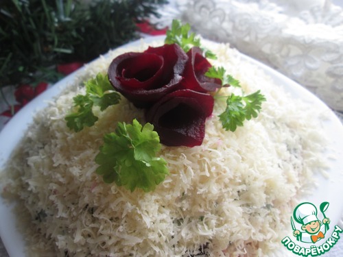 Для бОльшего "снежного" эффекта сыр натереть на мелкой тёрке.