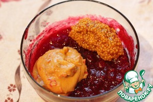 К тёплой ягодной смеси добавить оба вида горчицы (у меня острая горчица еще и с перцем чили).