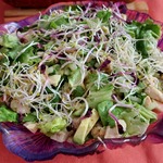 В получившемся салате доминирует только курица. Все остальные ингредиенты находятся с ней в полной гармонии и только оттеняют ее вкус, придавая каждой его ноте новое звучание. Кинза придает экзотичность, но если вы не знаете, что она там есть - вы ее не "услышите", настолько она на месте. Авокадо придает маслянистость и обволакивает каждый кусочек курицы другими составляющими, слепляя их между собой. Лук дает хрусткость и легкую свежую остринку. Сказать, что это вкусно - ничего не сказать.
