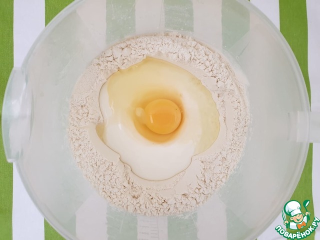 Во время работы с тестом, припыляем мукой рабочую поверхность.