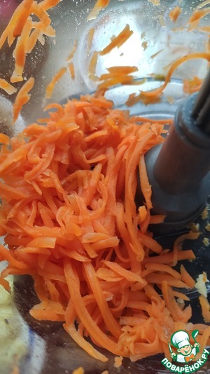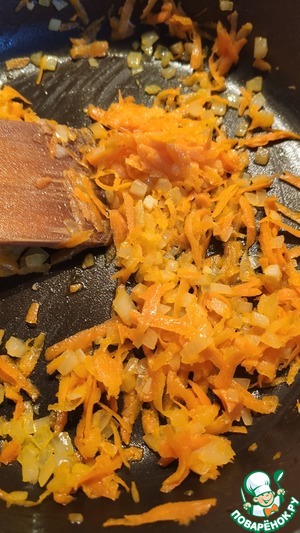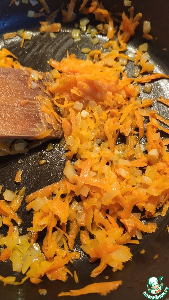 Одну луковицу и одну морковь с помощью комбайна GALAXY GL2300, используя насадку терку, натереть. Обжарить на растительном масле.