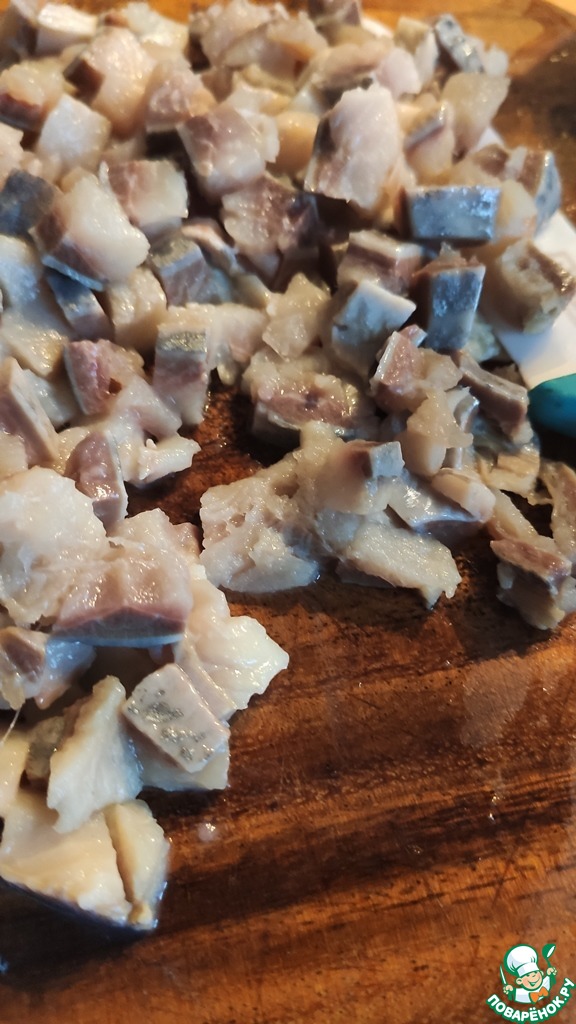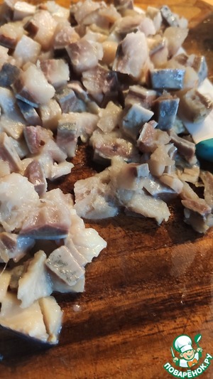 Филе сельди нарезать.