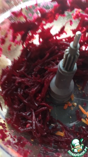 Чашу комбайна после каждого овоща я не мыла, просто выкладывала на тарелку, последней терла свеклу.
