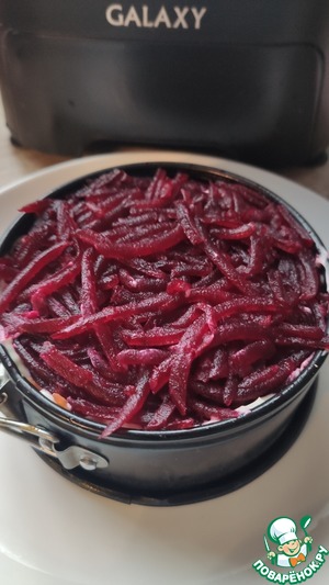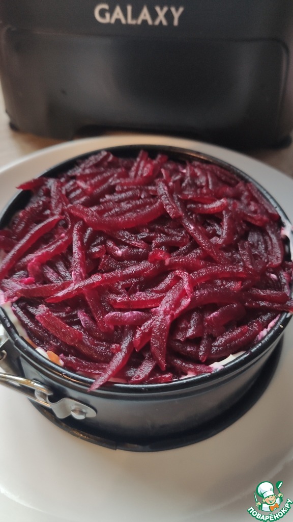 Последний слой свекла и сеточка из майонеза.
