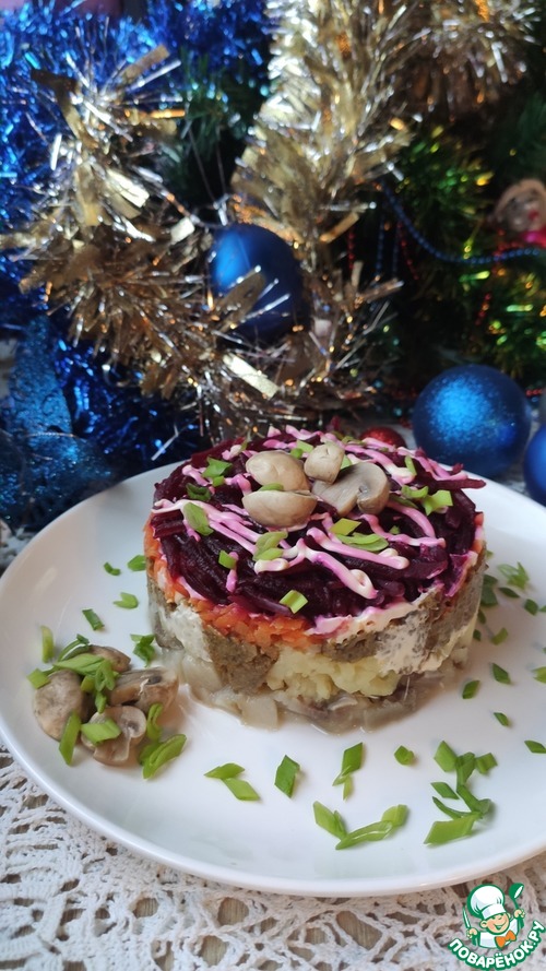 Сельдь под шубой традиционный салат на Новый год. У каждой хозяйки, своя фишечка, кто добавляет яблоко, кто то трет лук на мелкой терке. Я хочу поделиться рецептом салата с грибным паштетом. Он получается нежным, немного с грибным ароматом. Вкусно и просто, и конечно разнообразит новогодний стол.