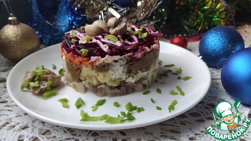 Рецепт «Сельдь под шубой с грибным паштетом»: