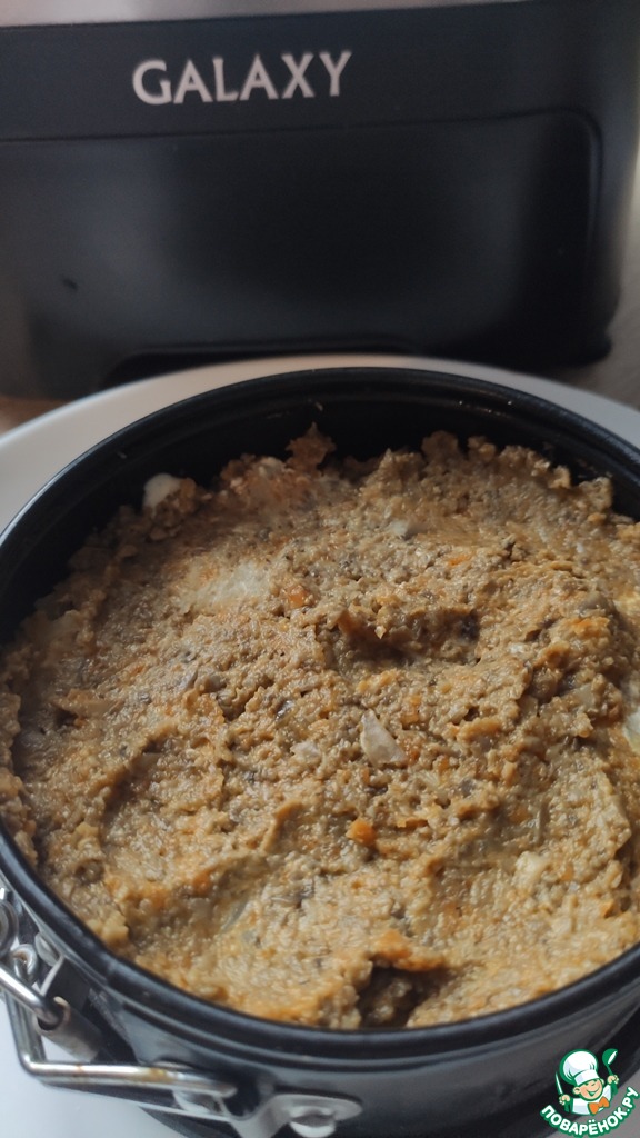 Поместить в чашу комбайна GALAXY GL2300, с помощью насадки нож, обжаренные шампиньоны с луком и морковью, перебить. Посолить по вкусу.