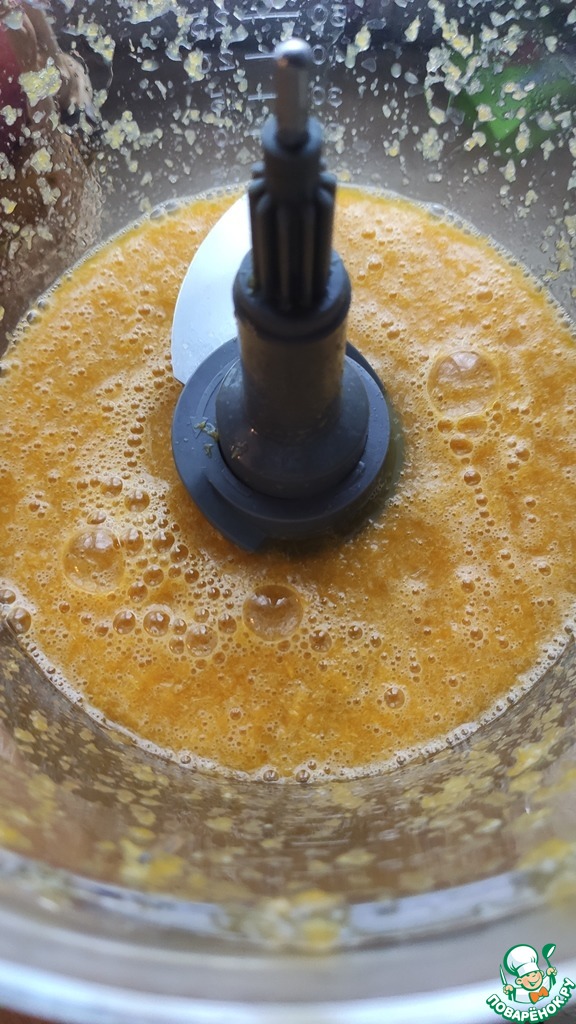 Поместить в чашу комбайна Поместить в чашу комбайна GALAXY GL2300 отварные мандарины, перебить с помощью насадки нож.