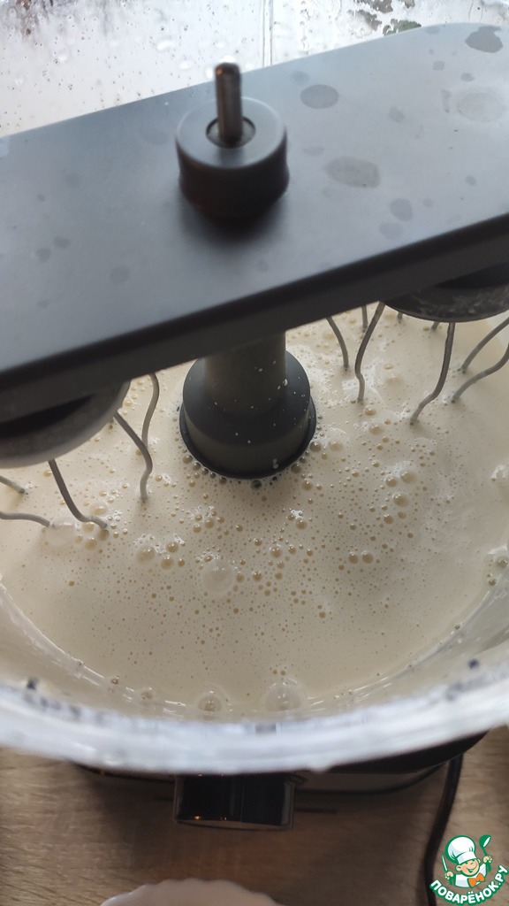 Яйца с сахаром взбить в комбайне GALAXY GL2300, с помощью насадки венчик.