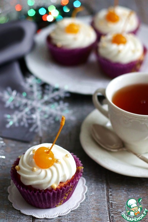 • Украсить капкейки вишенками для коктейлей и кондитерской посыпкой в виде жемчужин.