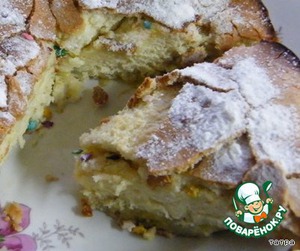 Мой пирог издавал вкуснейшие ароматы по квартире, и у желающих отведать кусочек просто не было сил ждать пока он остынет.Поэтому резали горячим (верх растрескался).Но вкусовых качеств пирог не потерял.