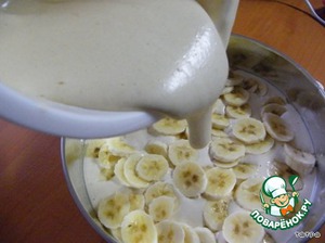 Вылить остаток теста,закрывая все бананы,поставить в духовку на 35-40 мин.