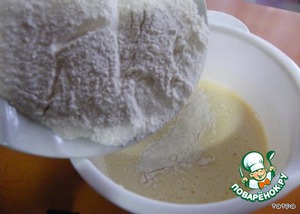 Затем добавить 1.5 стак.муки и миксером размешать до однородной массы.