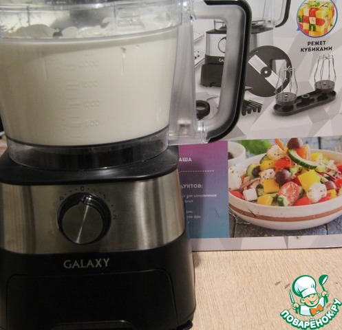 Для крема сливки взбить с сахарной пудрой, ванилью и сливочным сыром. Большая чаша комбайна GALAXY GL2300 позволяет приготовить такой объем за один раз!