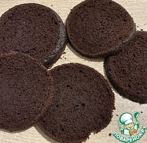 Разрезать каждый бисквит пополам. Выпуклую верхушку срезать, выравнивая верхний корж (можно и так съесть ее)