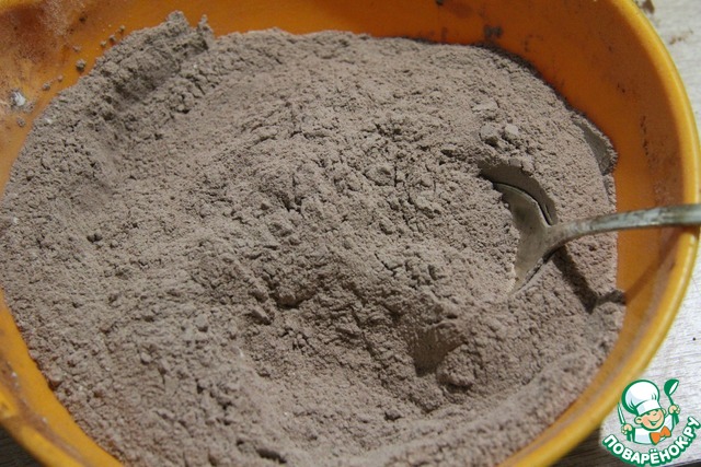 Смешать сухие ингредиенты: муку, разрыхлитель, соду, какао, сахар, соль.