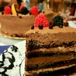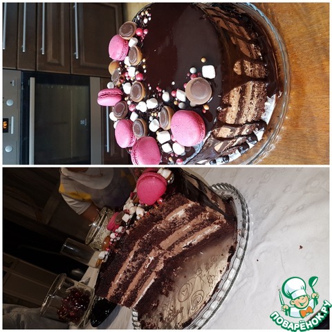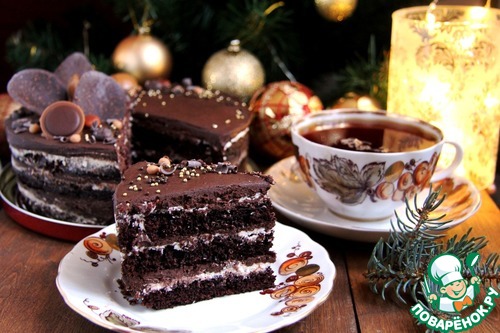 Замечательный торт, который я делаю уже не первый раз. Думаю, что пришло время с ним познакомить и вас. Очень шоколадный, очень вкусный, очень торжественный! Из предлагаемой порции я приготовила сегодня 2 торта (диаметр формы 18 см, из 3 коржей каждый торт) для двух достойных мужчин. Влажные шоколадные коржи совсем не требуют пропитки. Прослойка белым и коричневым кремом дают красивый срез. В моем случае он (срез) свежий, поэтому немного смазан. Когда крем стабилизируется, рисунок становится четким. С этим тортом меня "познакомила" сестра, упомянув, что такой торт они покупали длительное время на все торжественные случаи (она живет за границей. Название торта "Tuxedo" - "Смокинг"). Я нашла разные варианты этого торта и вывела оптимальный для себя. Любовь к нему пришла с первого укуса! P.S. Стакан - 250 мл.