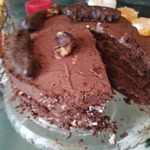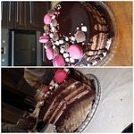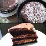 [+4]Единственный минус - оочень сладкий. Повторять точно буду, но сахара прилично уменьшу, и хочу все-таки кислинку, сделаю сыр из замороженного кефира в следующий раз. Крем с чёрным шоколадом мгновенно застыл при комнатной температуре, сложновато было его размазывать поверх более жидкого белого, из-за этого слои смазались, возможно сливки сильно круто взбила