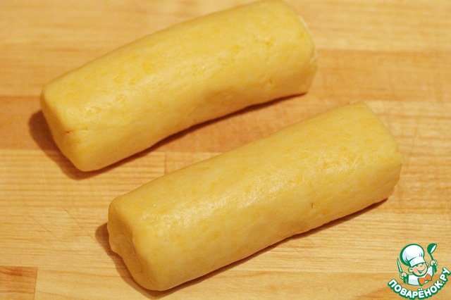 Затем разделить его на две равные части, сформовав из них цилиндры (с d4 см).