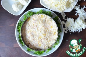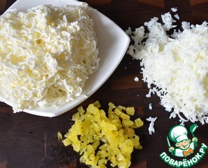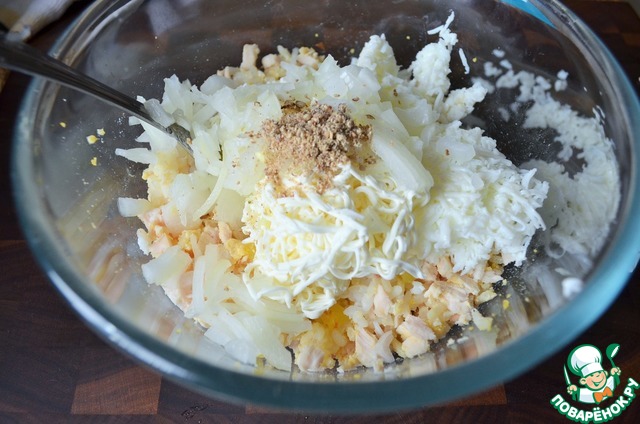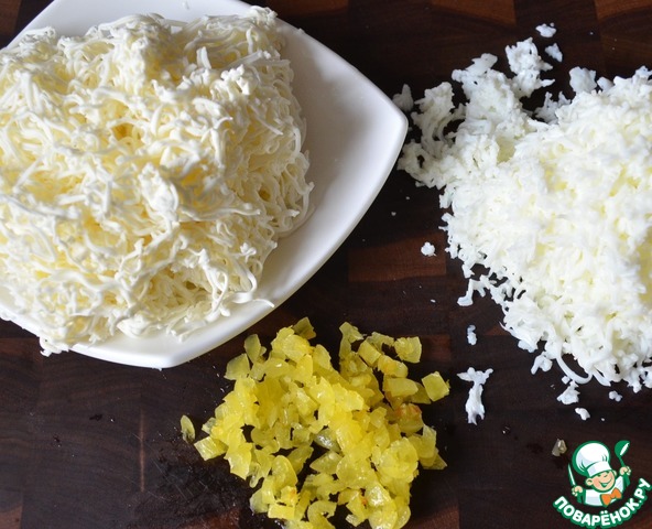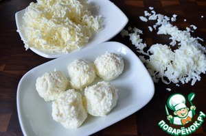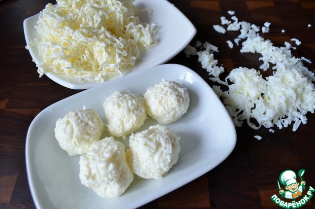1 ст. л. сыра, 1 ст. л. белков смешать, заправить майонезом, скатать "снежки".