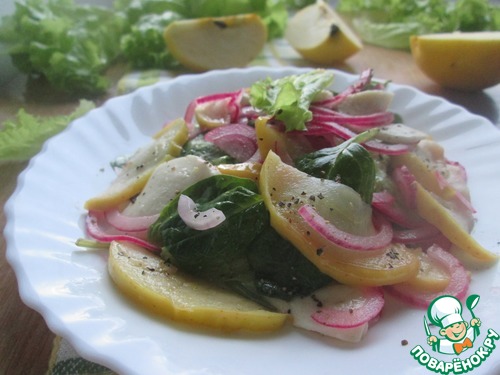 Салат со шпинатом и обжаренными яблоками