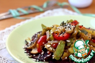 Всё складываю в салатник, перемешиваю и заправляю маслом.
