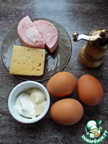 Ингредиенты для «Яйца, фаршированные ветчиной и сыром»:
