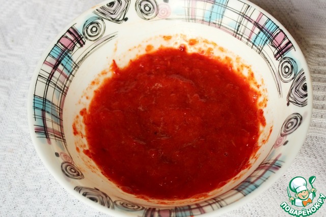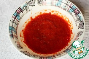 Очистите перцы, удалите семена, измельчите в блендере, добавьте оставшийся распущенный желатин. Хорошо перемешайте. -